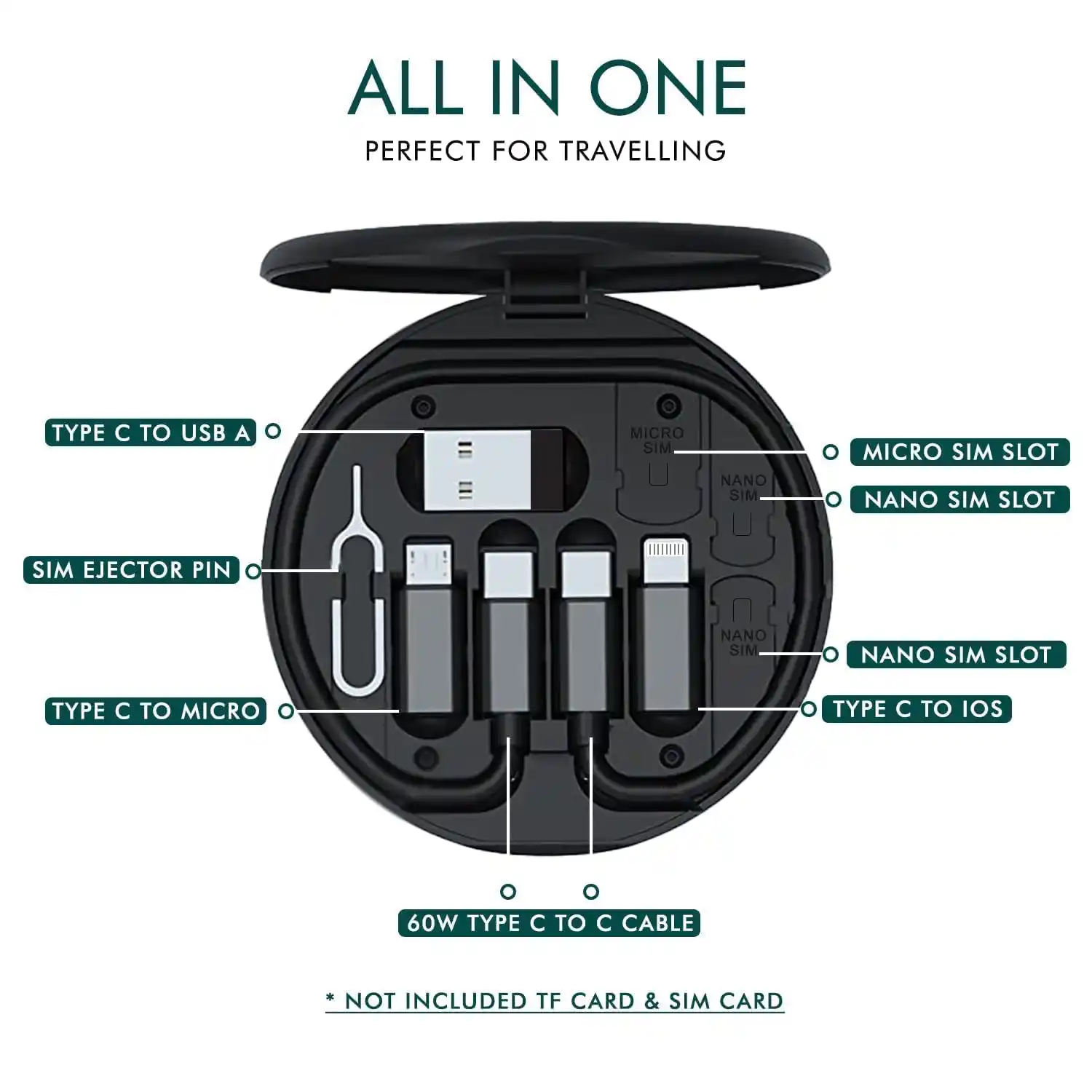 CarFrill All in One 60W USB Fast Charging Travel Cable Set